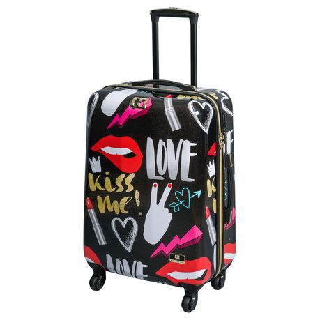 Plan a longer trip, vacation or cruise with the chic Halina Nikki Chu Kiss Me hard side spinner luggage! It is elegantly lined and has glide-tech spinner wheels that roll along smoothly in any direction! The Halina Nikki Chu Kiss Me luggage is made of Armor-flex composite. It has a high gloss finish and is impact and scratch resistant! Travel often with the Halina Nikki Chu hard side luggage!