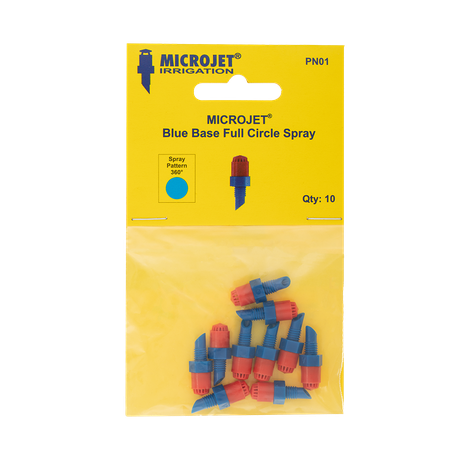 This pre-assembled Microjet comes with a blue base. The bases are colour coded to indicate the orifice size. The blue base is the most widely used base and has an orifice of 1.0mm diameter discharging on average 40 litres per hour at a 1.5 bar pressure.