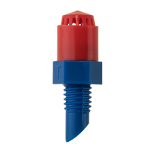 The red cap on this pre-assembled Microjet has a circular (360°) spray pattern. The caps are colour coded for their spray patterns. They are also available in blue (half circle -180°), green (quarter circle – 90°) and black (strip spray 2 x 20°)