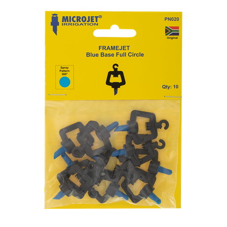 The Microjet Framejet is an open framed Microjet with a standard Microjet base, in this case a blue base. Any Microjet base can be used depending on the required flow rate, which will affect the extent of the wetted area.