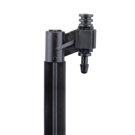 This 450mm high stake comes with a clip head and a jet adaptor but still requires a jet of your choice to be assembled on the top and PVC tubing to be installed onto the bottom of the jet adaptor, as well as a barbed connector/tube connector to connect the flexible PVC tubing to the polypipe.