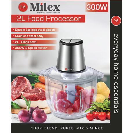 The Milex 2L Food Processor is equipped with an anti-slip rubber base to keep the bowl stable, as well as a safety feature called match-motor with a plum interface to lock the blade into place before used and a thermal protection device for overheating. Its safety switches will stop the motor from grinding once you release the button making meat grinding safer than before. The Milex 2L Food Processor is so easy to assemble with all the parts being removable helping to make the cleaning easier, the compact and lightweight design making storage quick and won't take up space in your kitchen.
