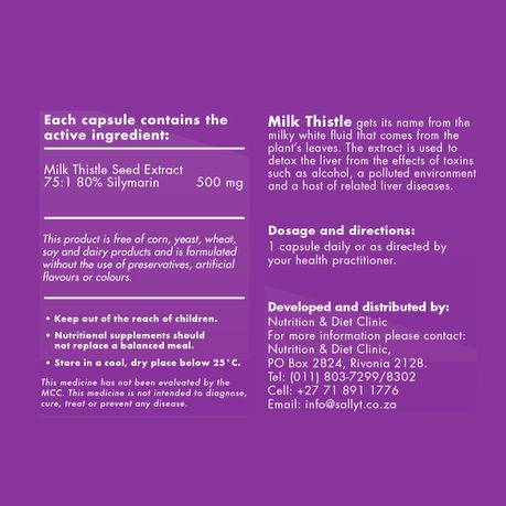 1 x Milk Thistle Extract 80% Liver Health and Detox. 500mg; 60 Caps