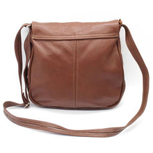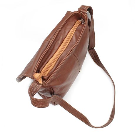 A flap-over that closes with a magnetic clip, zip compartment at the back and also the bag closes with a zip. The bag has a lining on the inside and we provided an additional zip compartment on the inside for your keys or easily accessible goodies.