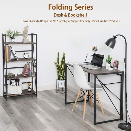 Ideal Gift Choice - No Assembly Computer Desk: Only 1 step, just open the black frame and snap the desktop on it, then the installation is complete.