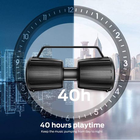 ?Portable Bluetooth speaker?- Want twice the speaker power? Adventurer Force has 20W * 2 dual speakers and multiple stereo effects. to create discrete left and right channels with a combined 40 watts of audio performance. Built-in 4000mAh powerful lithium ion battery guarantees up to 40 hours of continuous play time!
