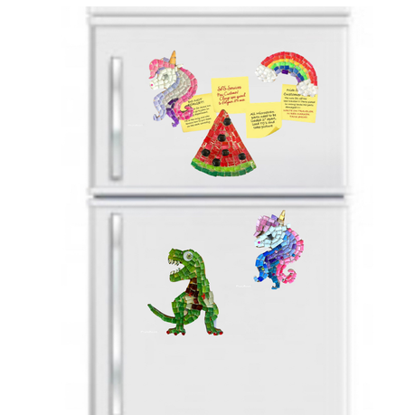 This is a hand-crafted small mosaic kit with a magnet, specially put together for you using locally sourced products. It s a great way to display your child s artwork as once it is complete, it can be used as a fridge magnet; given as a gift to family and friends; or used to decorate your child s magnetic reminder board.
