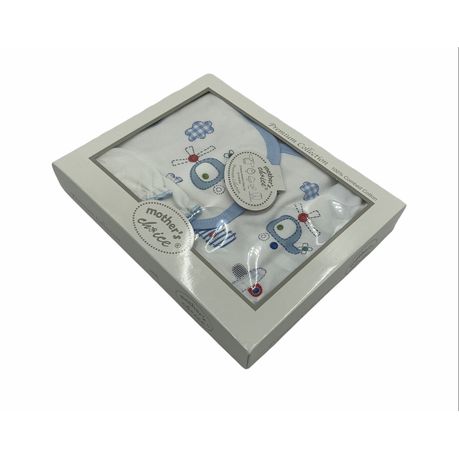 This coordinated design of 5 pieces set is elegant yet subtle. Great for new parents. Made from the softest cotton, great to take the baby out of the house and make as wonderful gifts, whether for a new birth or a baby shower.