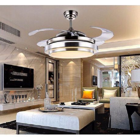 Blades swing out of unit horizontally to full fan sweep under centrifugal forces - light on/off and in fan on mode