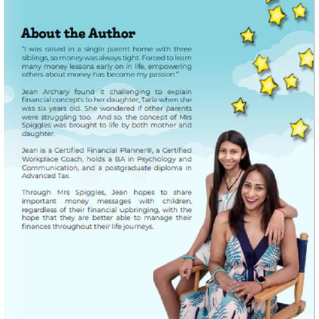 Mrs Spiggles is a collection of stories that teaches children between the ages of 5 and 12 about essential money lessons. Based on the concepts of earning, saving, spending and giving. The purpose of this book is to improve the financial outcomes by educating and raising financially savvy kids.