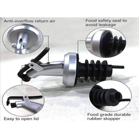Nondrip pourer: brushed metal pour spout with sealed cap and flap cap fit the bottle well and perfectly keep bugs/dust out. Pour and dispense oil with a nice stream without a leakage. Ideal for dispensing cooking oils, dressings and vinegar
