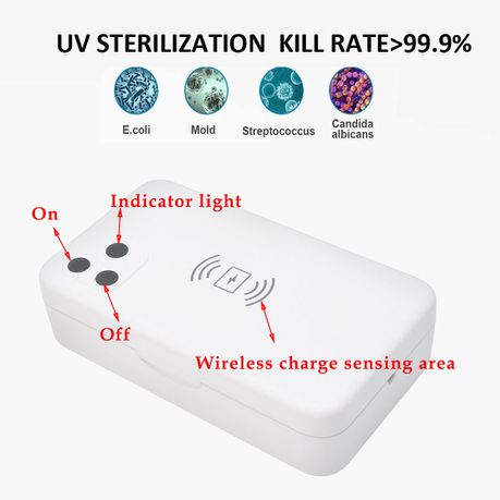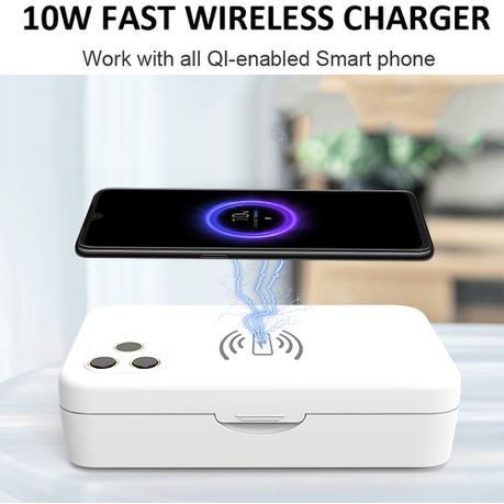 2 in 1 UV phone sanitizer and fast wireless charger case station. Small portable design, keep your phone clean while at home or when you travel.