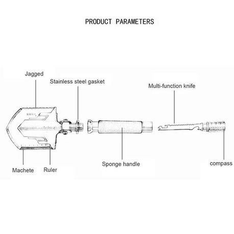 Size: length: about 35.5cm/13.98in, function knife: about 10cm/3.94in, length of shovel surface: about 12cmwidth 10.5cm/4.724.13in