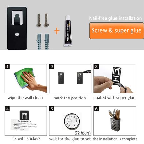 No nails/screws are needed to have these fixed to the wall. Apply the nail-free glue provided to the wall-mount holders position them where desired then press firmly.