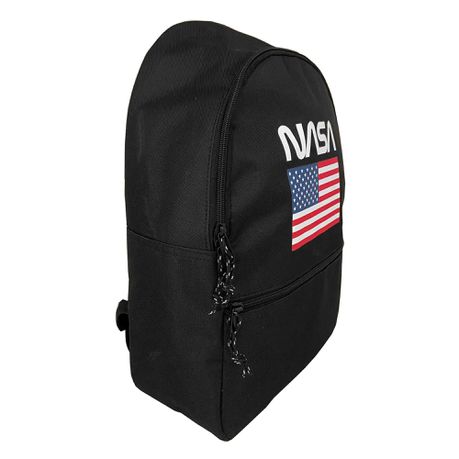 Nasa brand with one main compartment and front flush pocket, flag print.
