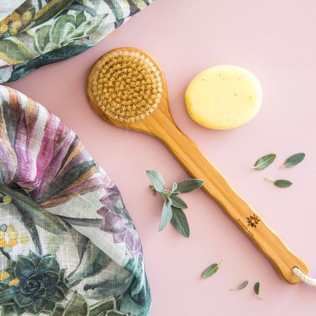 Our natural Body Brush is made from bamboo that is FSC approved which means it is sustainably sourced. The bristles are made from boar, hair which provides a soft exfoliation and eliminates the need for plastic loofah's.