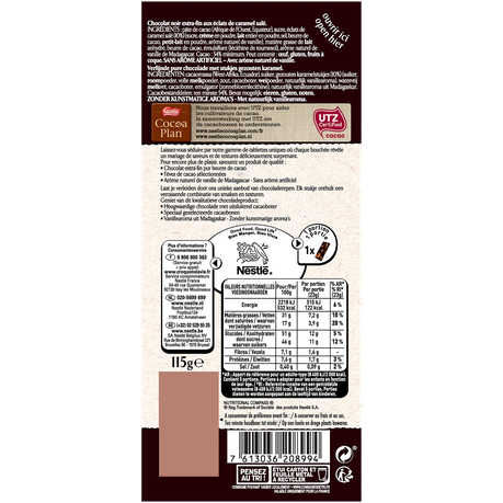 - Nestlé Les Recettes De L’atelier Dark Chocolate Salted Caramel is an intense dark chocolate with crunchy caramel pieces.