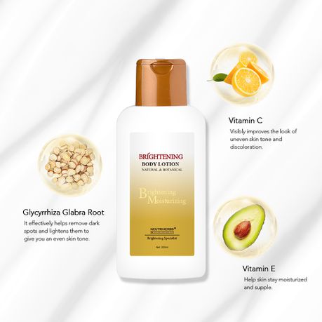 The Neutriherbs Brightening Body Milk is composed of the most effective and fast-acting skin-brightening ingredients. This natural skin care cream is formulated to reduce skin pigmentation while it highlights the skin without being an irritant. It not only highlights and brightens your skin, but it also adds moisture and protection against our environmental stressors.
