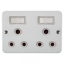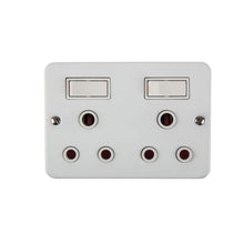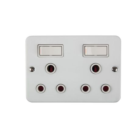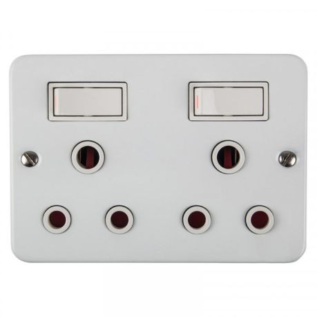 Nexus - Switch Socket Industrial - 2 x 16A Surface mount double three-pin wall plug with switches to connect or disconnect a circuit for appliances with a maximum load of 15A.