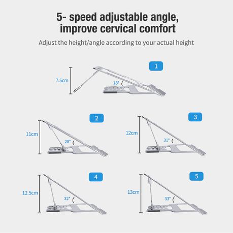 Nillkin FlexDesk Adjustable Laptop stand is equiped with 5 adjustable angles that will enable you to position your screen to the most comfortable position, relieving your cervical pressure effectively.