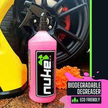 No nasties. Nuke Bio Cleaner is biodegradable and alkaline-based, free from acids, CFC's and solvents.
