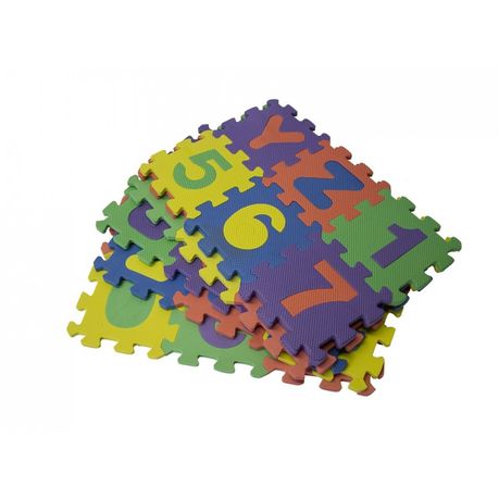 Nuovo - Puzzle Play Mat - Create a fun, colourful and comfortable spot in your home for your little one to play on. The Nuova Puzzle Play Mat is made up of 36 pieces of interlocking tiles with alphabets and numbers on them. Includes 26 Alphabet letters (a-z) and 10 numbers (0-9). Each letter can pop out, which creates a life-size puzzle for your child as well as help them learn different colours, the alphabet and counting. This improves their hand-eye coordination as well as cognitive and problem-solving abilities, all while having fun. The soft foam material keeps the floor safe for your child. The pieces are easy to clean using a damp cloth and mild soap.