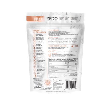 Oh So Pure - 100% Hydrolyzed Collagen Peptides 300g made from Bovine – Type I & III Collagen Peptides