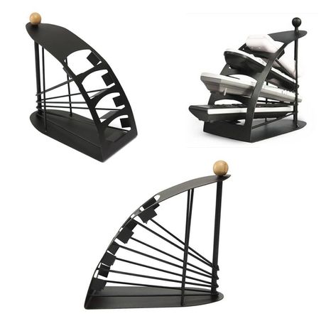 Remote Control Caddy or Remote stand organizes all of your handheld remotes. The convenient table-top holder features a stylish curved, stair-step shape that keeps up to four remote controls in view and easily accessible. No more lost or misplaced remotes! Slim design takes up very little space on your coffee or end table.