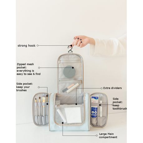 Ultra-large: this extra large toiletry bag has a dimension of 23 x 25 x 11 cm with the capacity of 6.3 litres, especially a practical height of 25 cm which could easily fit lots of essentials and toiletries as well as toothbrushes, toothpaste, comb, makeup brush etc.