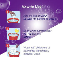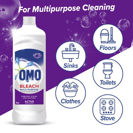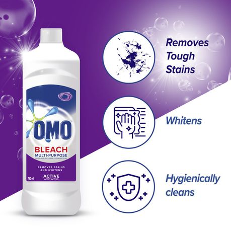 OMO Bleach Active is an unbeatable stain remover laundry bleach. It is specifically formulated to penetrate, lift and remove stains, leaving your clothes stain free. Use on white clothes for best whitening results.