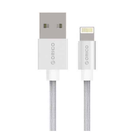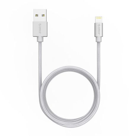 1 x Orico Nylon USB2.0 to Lightning Apple Charge & Sync Cable 1m - Silver