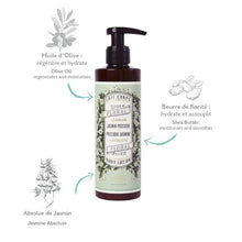 A cream with a fluid and light texture, rich in Olive oil and Shea butter that nourishes the body for a delicately scented care.