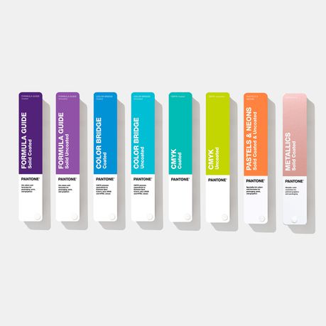 Includes Formula Guide (Coated & Uncoated), Color Bridge Guide (Coated & Uncoated), CMYK (Coated & Uncoated), Metallics, and Pastels & Neons