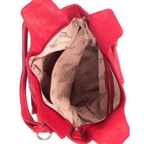 Parco Collection Red Casual handbag with plenty of space inside. Simple front hardware finishings.