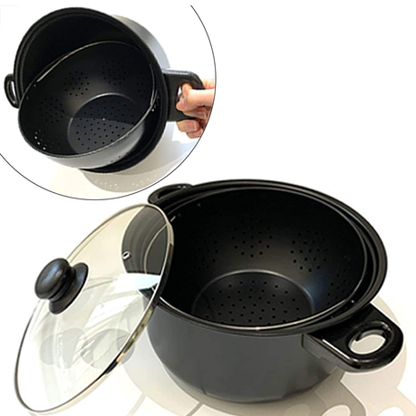 Heavy Duty Pasta Pot With Built-In Strainer. Still, worried that veggies and pasta will fall off easily when draining?