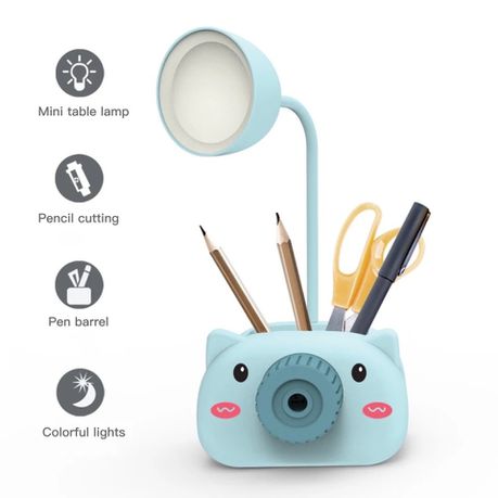 Multi-function and all in one pen holder, it's not only a pen holder, but also a mini desk lamp and a pencil sharpener.