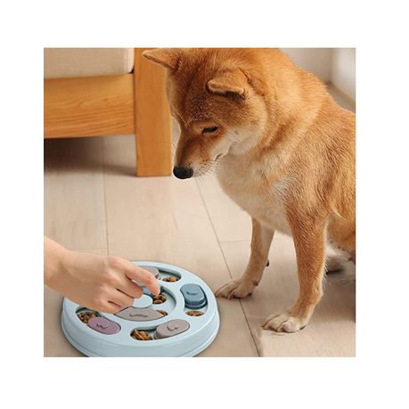 The pet food puzzle feeder doubles up as a kibble treat dispenser slide toy and an activity game.