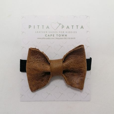 The leather bow is 6.5cm wide and attached to a 15mm wide elastic.