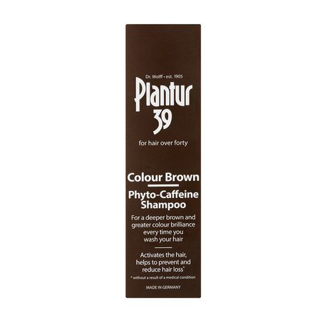 The Plantur 39 Colour Brown Phyto-Caffeine Shampoo results in a deeper brown and greater colour brilliance with every wash. Greys and light roots are hidden. Coloured pigments build up on the hair with each wash, increasing the colour intensity over time. At the same time, activating Phyto-Caffeine penetrates the hair and helps prevent hair loss without the result of a medical condition. Use with Plantur 39 Brown Phyto-Caffeine Conditioner.