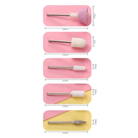 - This manicure and pedicure kit includes 5 types of drills, designed for diverse use - remove callus, clean, grind, and polish your nails.