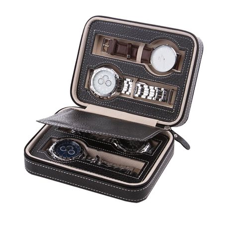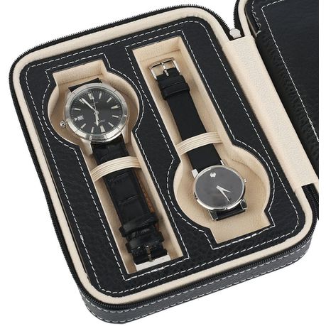The perfect watch travel case storage organizer for you travels or just to store in your dresser. It fits 4 watches perfectly (Up to 52 mm in size) and stays in place with the elastic strap. It features a padded divider to protect the watches from any scratches while in the watch case.