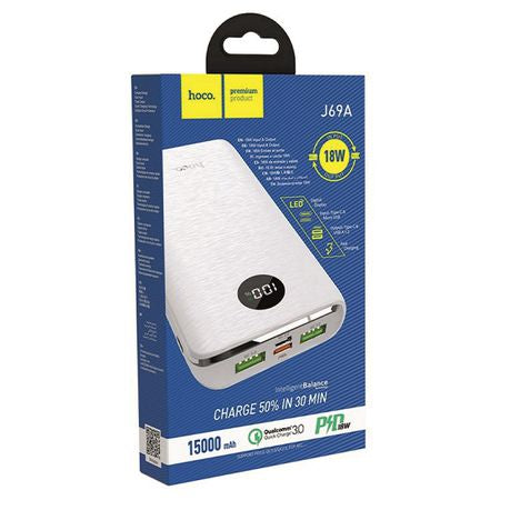 J69A Speed flash mobile power bank 15000mAh, Micro-USB / Type-C input and Type-C 18W / dual USB 18W 3A output, LED display, support for PD3.0, for QC3.0/QC2.0, for FCP, for AFC.