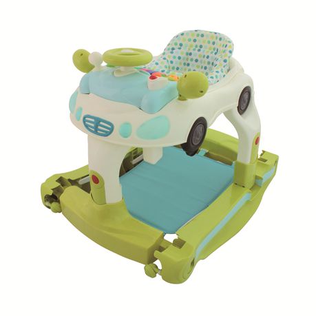 The Premamam 4 in 1 is a deluxe rocker walker which you can covert into a walker or a rocker. The walker has a musical tray and padded seat. The walker also comes with stoppers. You can unclip the top tray of the walker and use it at the pusher / walking assistant.