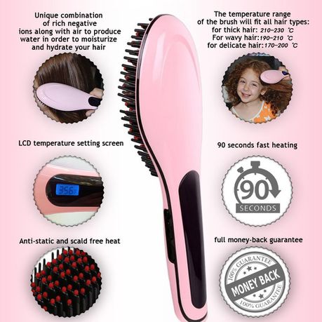 Professional Detangling Hair Brush Hair Straightener - Pink