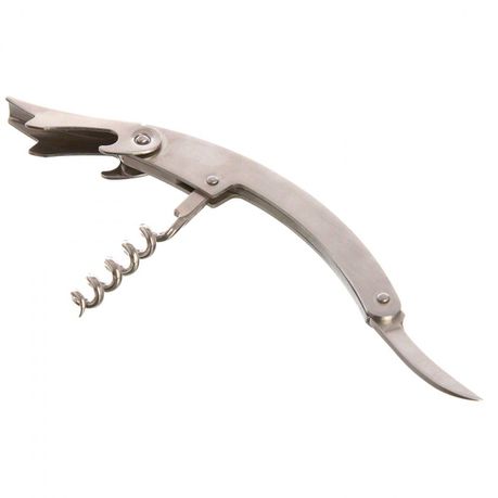 - The corkscrew’s integrated foil cutter is serrated and curved for easier use.