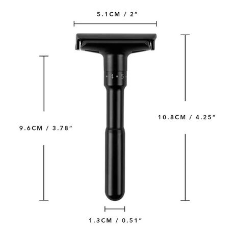 - Handle measures 9.6cm. Razor total dimensions are 5.1cm W X 10.8cm H.