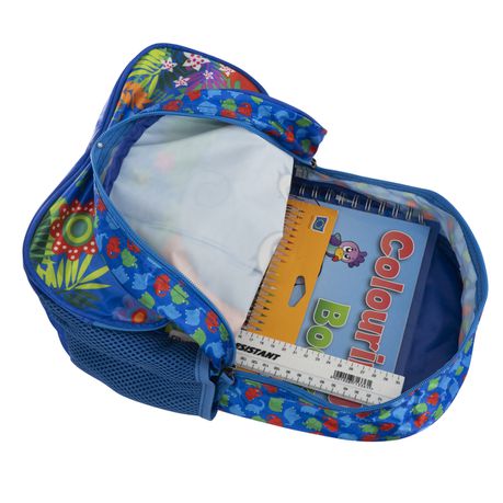 Two mesh side pockets offer space for water and juice bottles while adjustable straps ensure that the fit is just right. A main zipped compartment offers space for bigger items like lunch boxes while the zipped front pocket is perfect for smaller goodies.