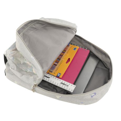 Let your child be the star of the show at school with this stunning backpack brought to you by Quest. With one main zippered compartment (including an elasticized inner compartment) for books, lunch boxes and stationery items, as well as a front zippered compartment for smaller stationery peripherals, the Quest Shining Star Glam Backpack is as practical as it is trendy. Featuring a unique sequined, starry and glitter design that your child will love, it’s the perfect backpack for those “back to school” moments.