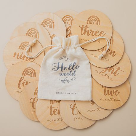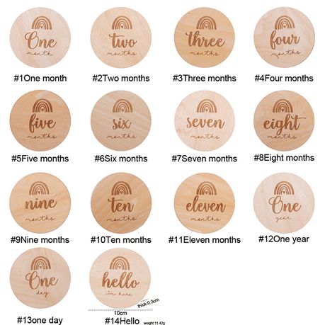 Set of 14 round wooden milestone cards made with 100% high quality wood.