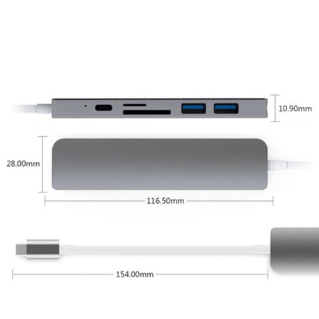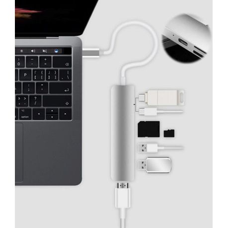- USB-C Hub with charging port, HDMI port, 2 x USB 3.0 ports, and SD and Micro SD card slot